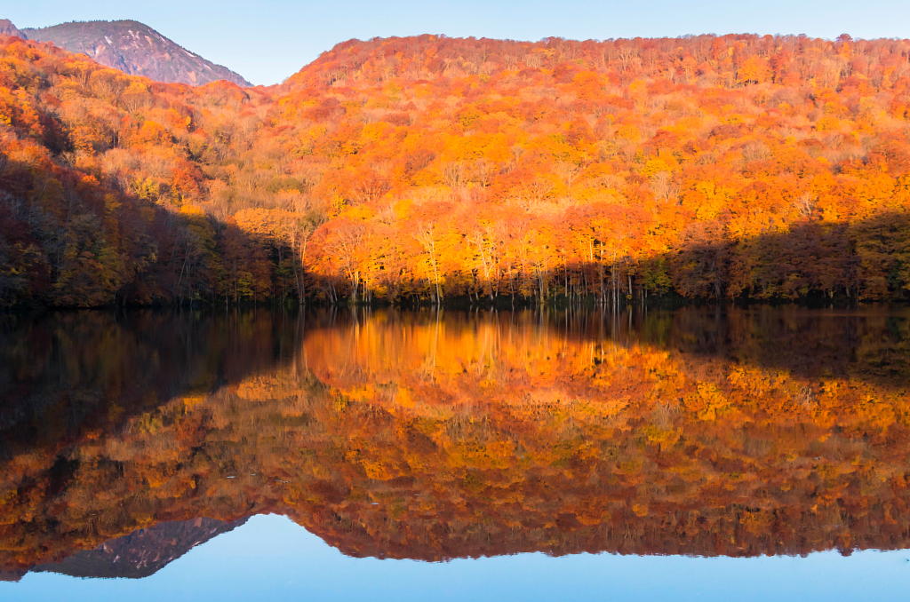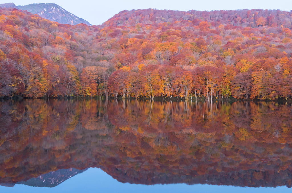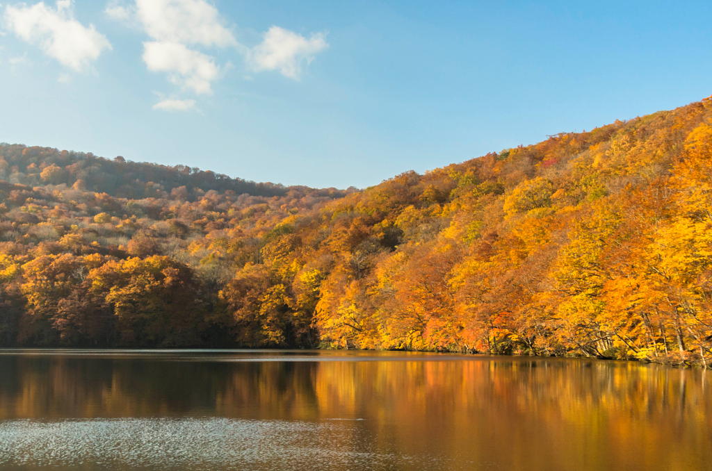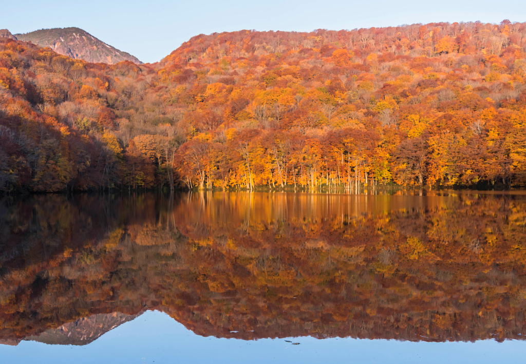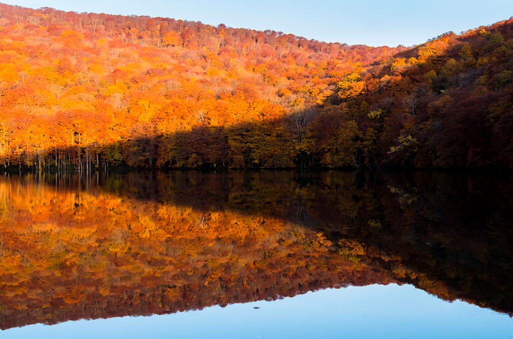 特定の気象条件下でしか見られない秋の絶景「蔦沼の朝焼け」は別格な人気です。