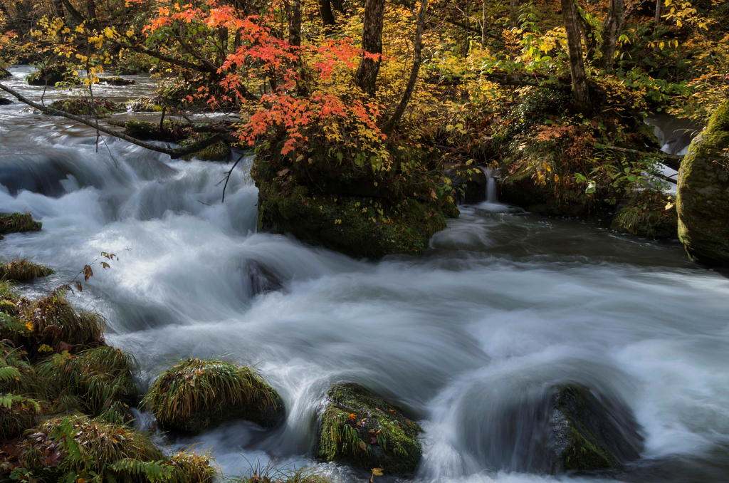 奥入瀬渓流の紅葉、「阿修羅の流れ」付近