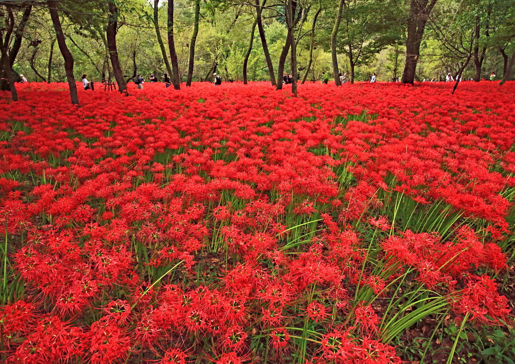 500万本の曼殊沙華が、赤い絨毯を敷き詰めた様に