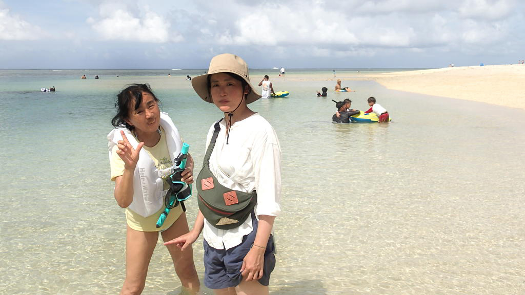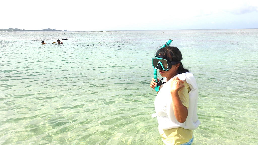 野底マーペーを下りてから米原ビーチで、ダイビングを終えた娘と合流