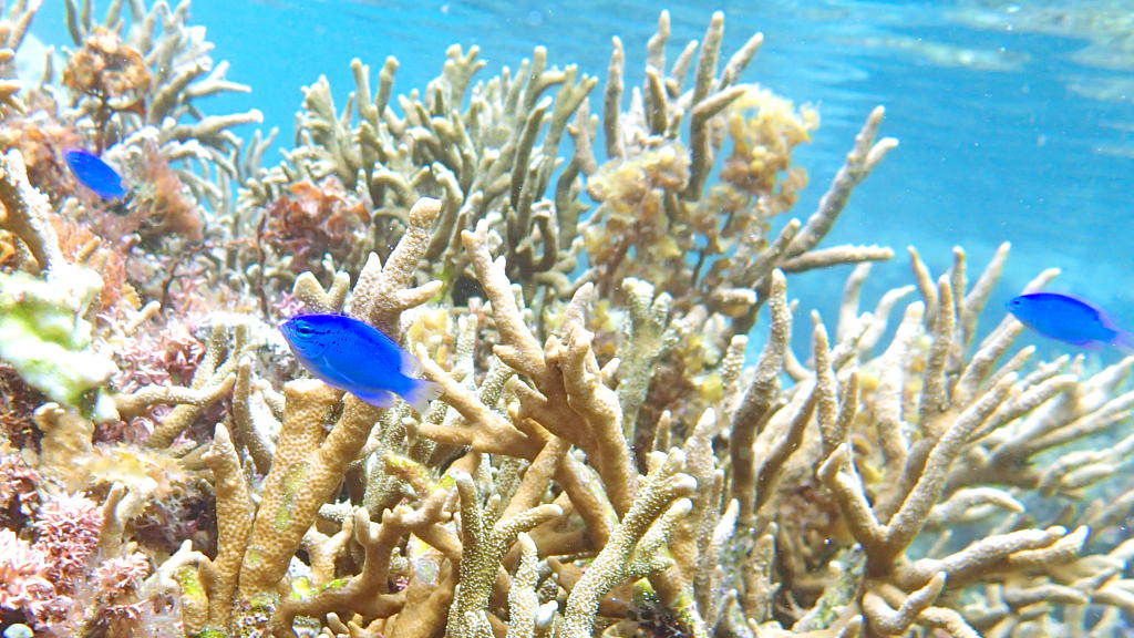 シューノーケリングで、お魚と遊びます
