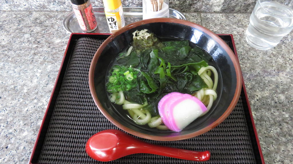 フェリーターミナルで わかめうどん(550円)のランチをいただきます。