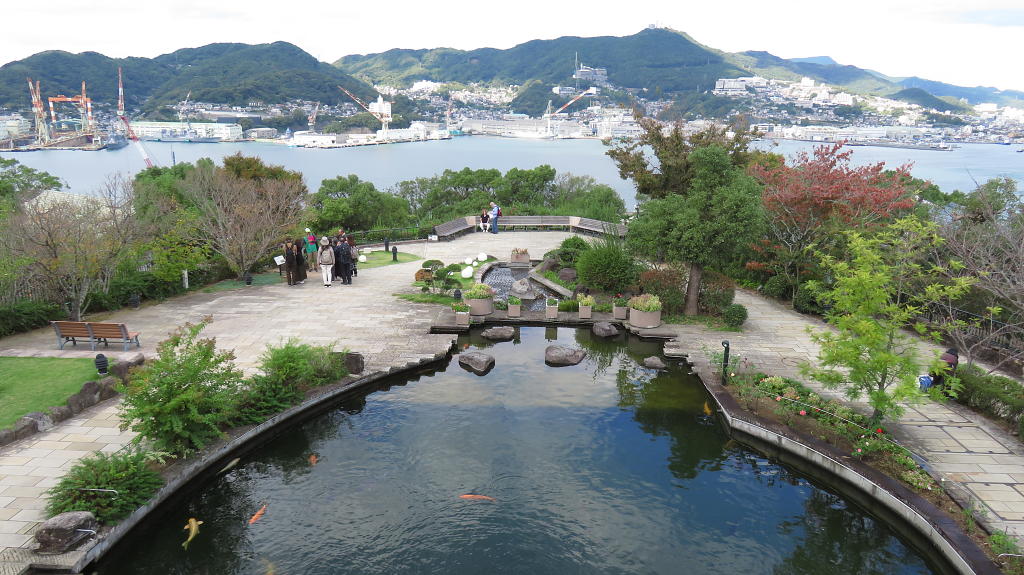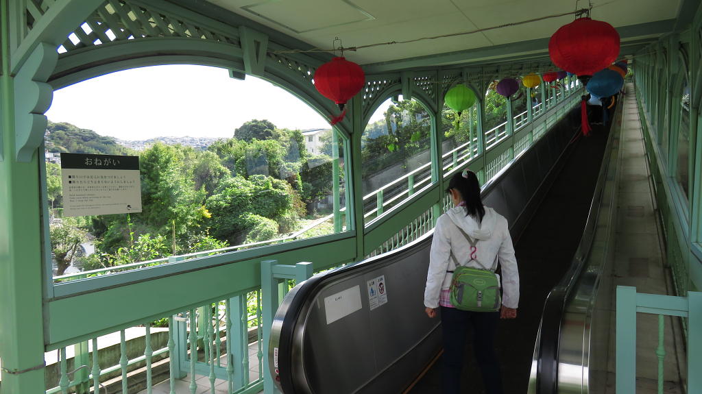 斜面に造られたグラバー園は、エスカレーターて昇ってゆきます。