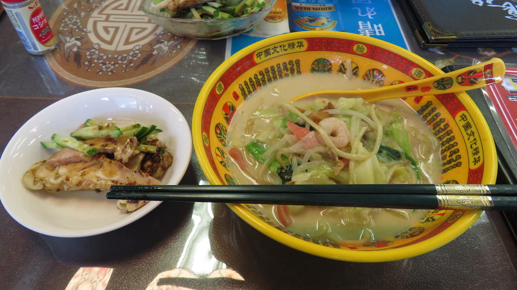 ランチは長崎ちゃんぽんと蒸し鶏をいただきました。