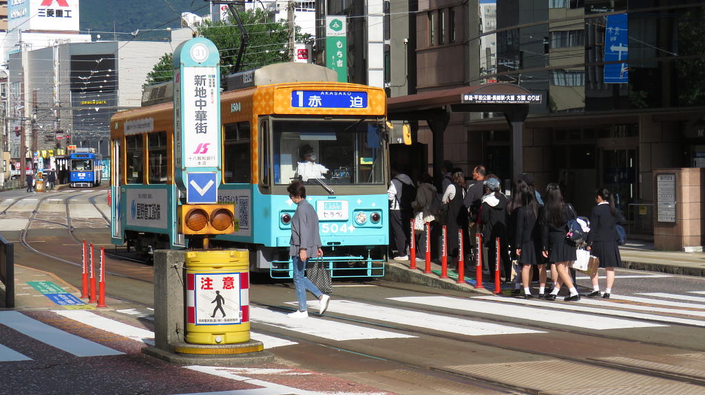 ホテルに荷物を置いてから、市電(一律運賃150円)に乗って出島に向かいます。