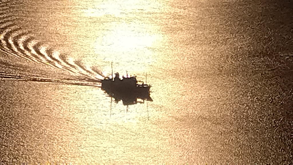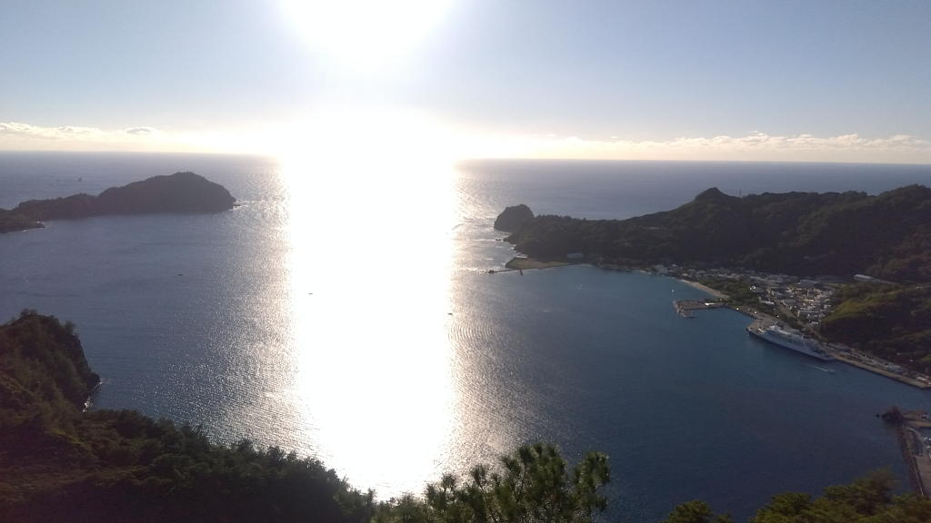 坂道を登ってゆくと視界が開けて、二見港が見えてきました。