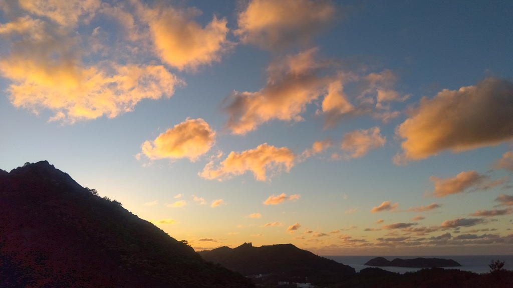 町へ下っていると、綺麗な夕焼けが広がりました!