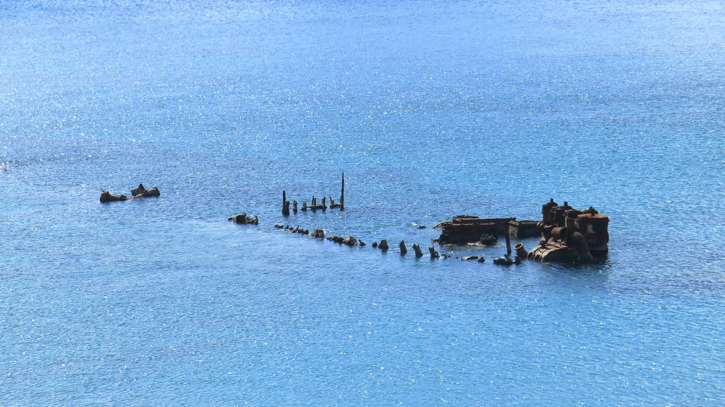 境浦海岸には、太平洋戦争で沈没した船があります。