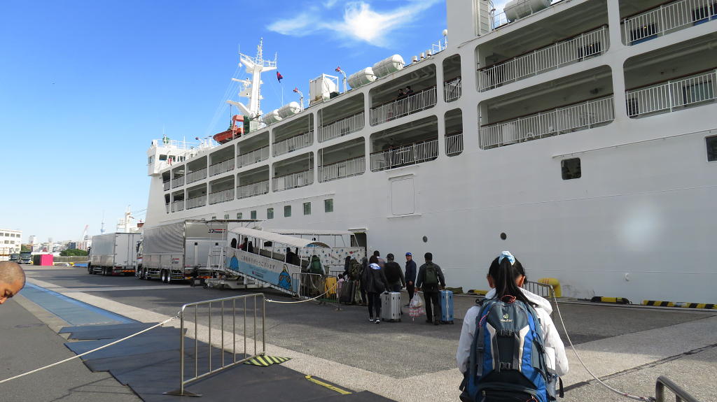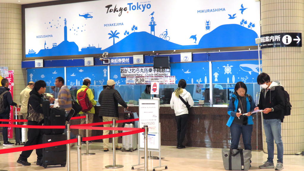 竹芝桟橋で おがさわら丸の乗船手続きをします。