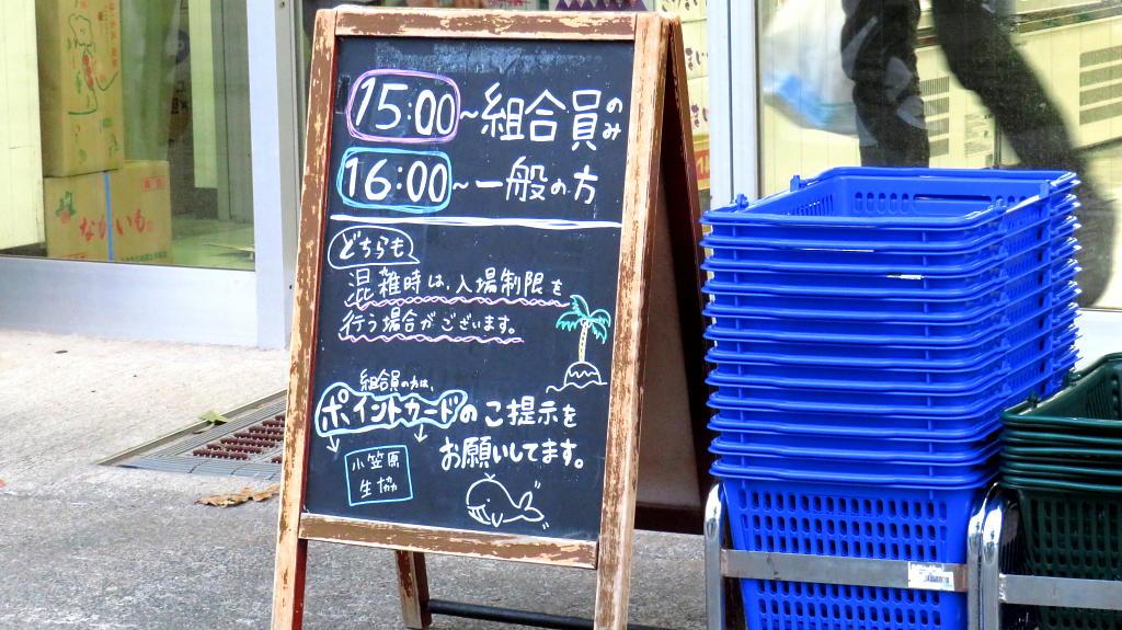 おがさわら丸が着くと、スーパーには新鮮な食料などが並びます。