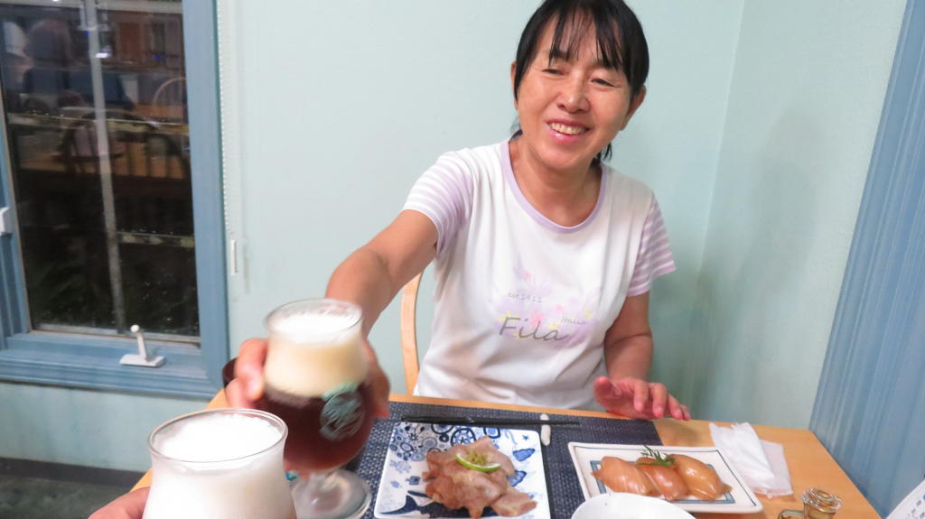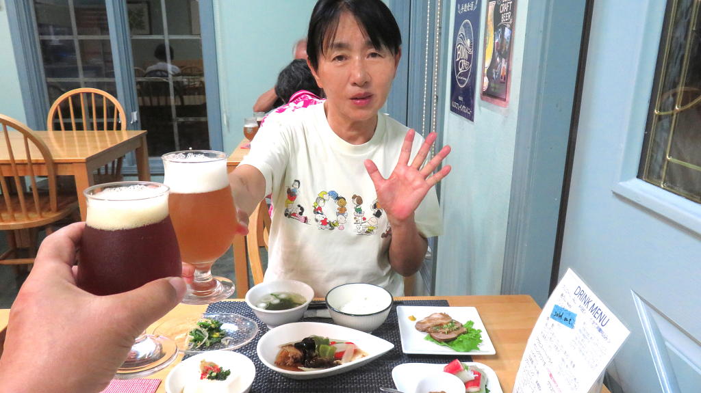 雨の中、ホテルに戻って 今日もビールでカンパイ!